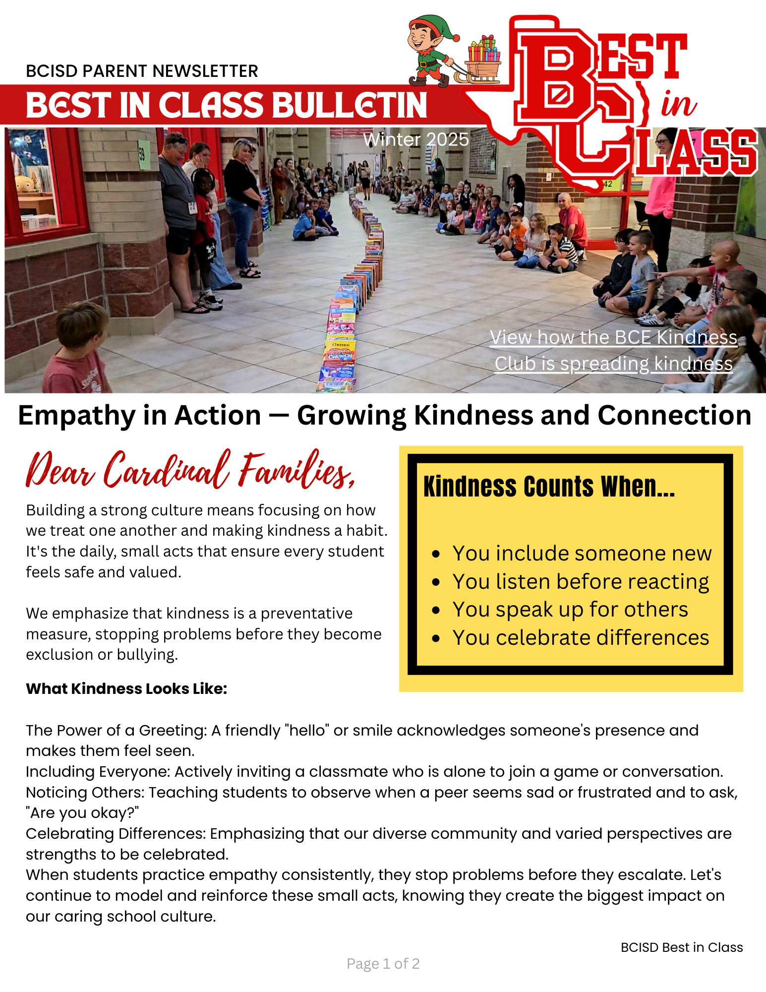 Cardinal Parents,Please find attached the Best in Class Newsletter for Winter 2025.